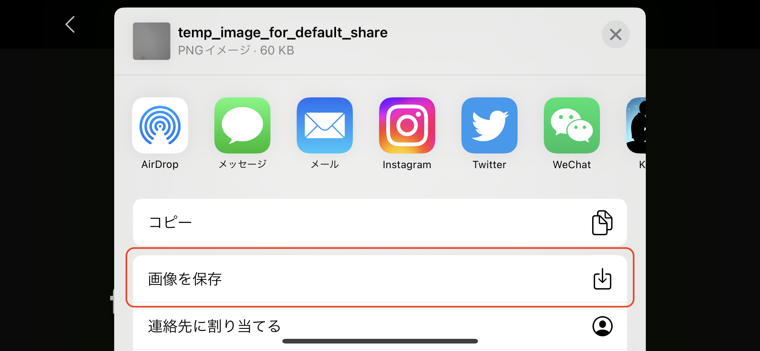 上記の手順で携帯端末側(カメラロール)に保存されます。