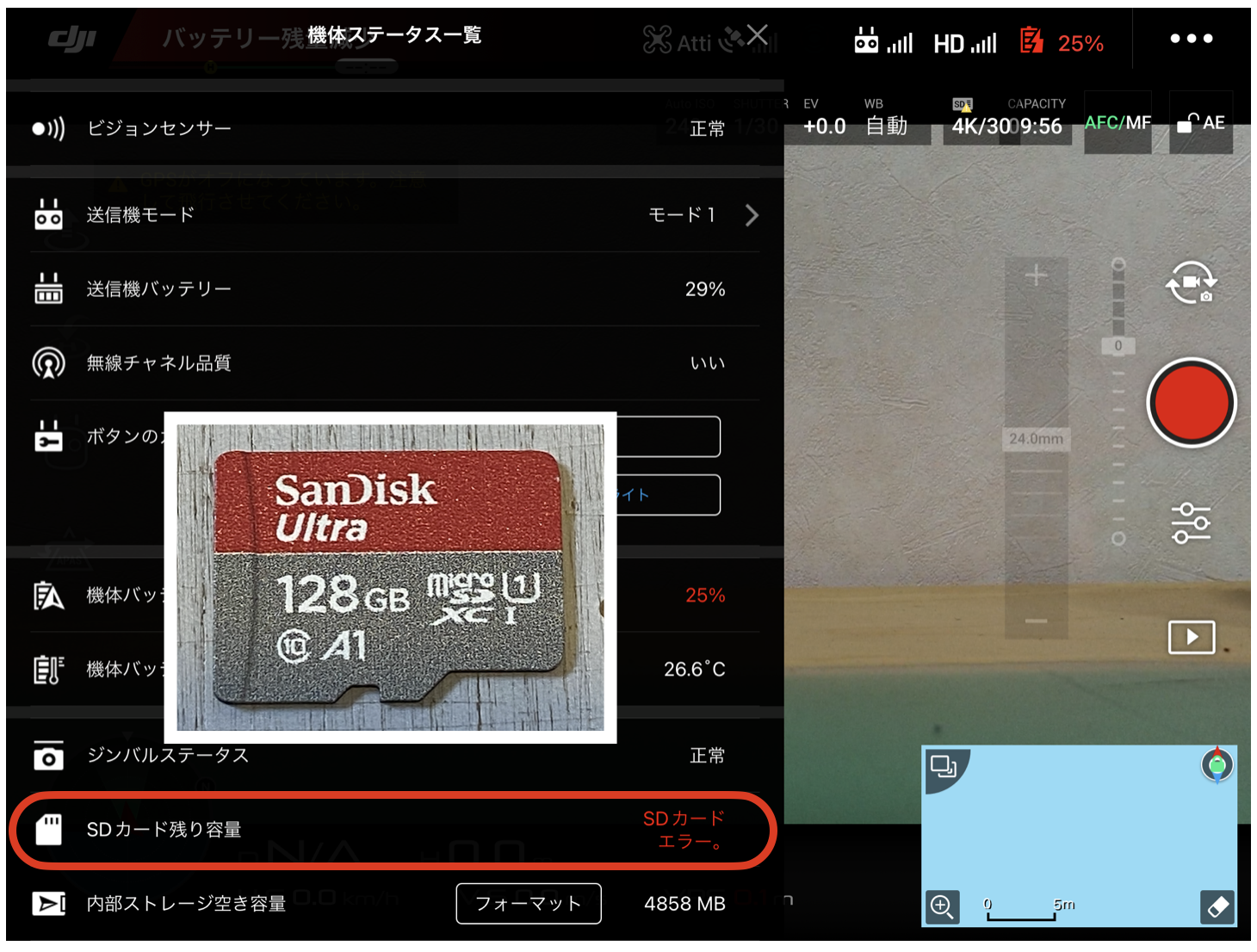 [DJI GO 4]機体ステータス一覧のSDカード残り容量に「SDカードエラー」が表示される