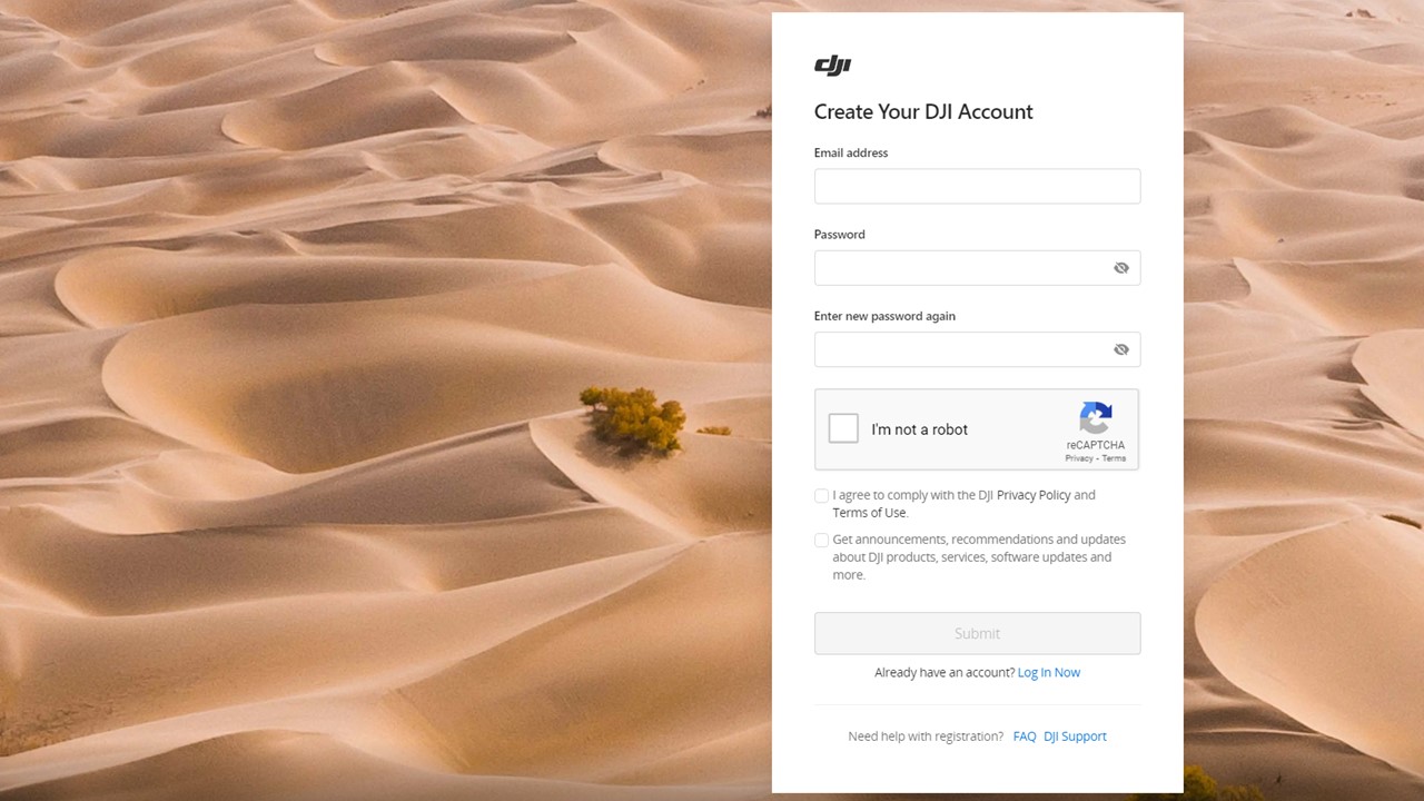 DJIアカウントをお持ちであれば[Log in Now]を選択します。