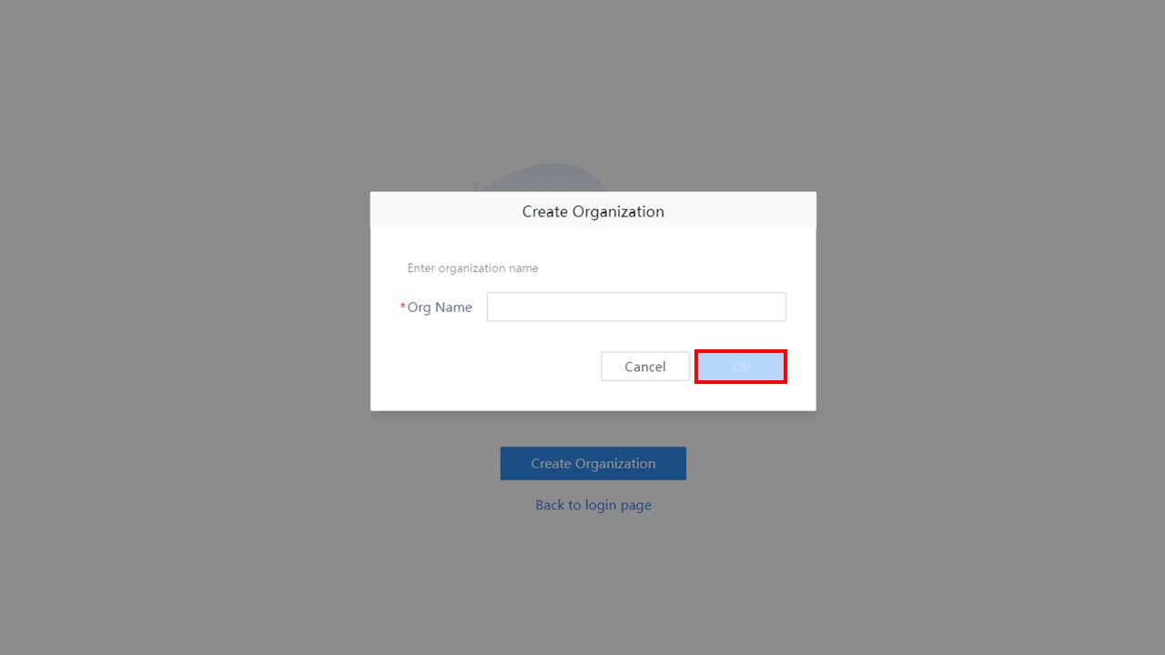 組織名を入力し[OK]を選択すると、新規Organization(組織)ページが作成されます。