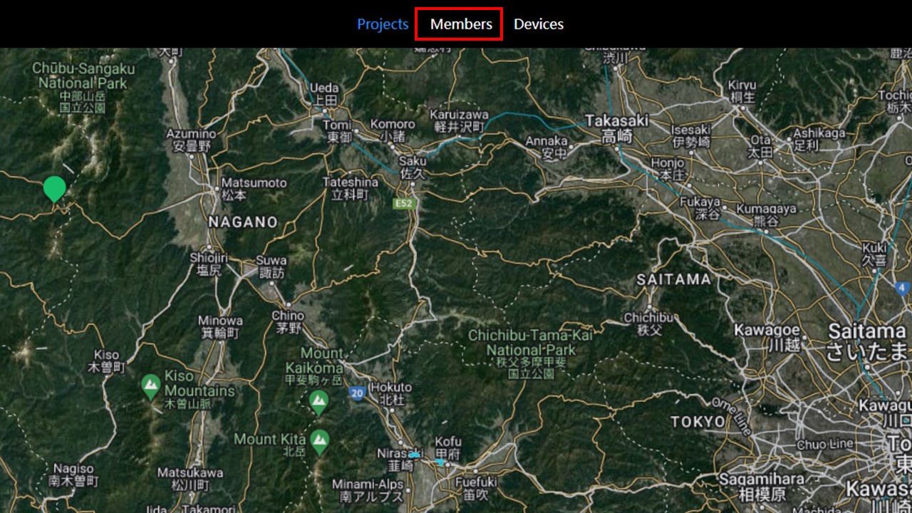 1.FlightHub2の操作画面、上部中央にあるMembersを選択する