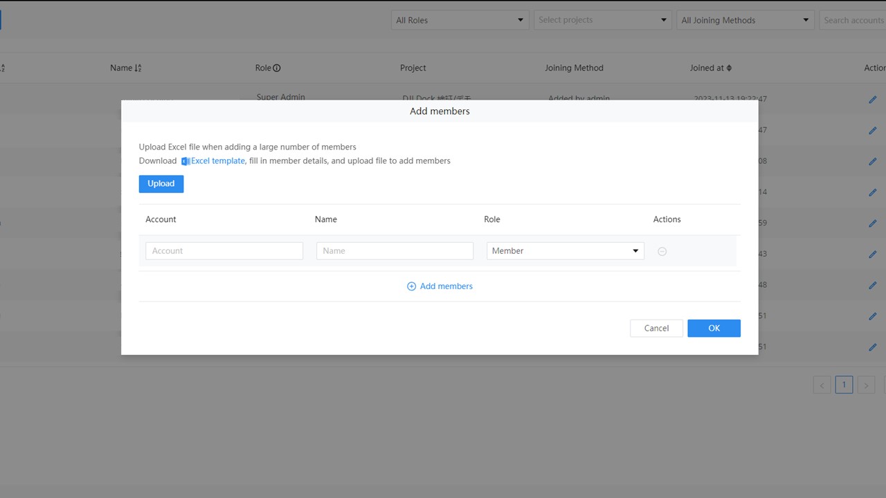 ※Excel template を使うことで、大人数を一度に追加することも可能です