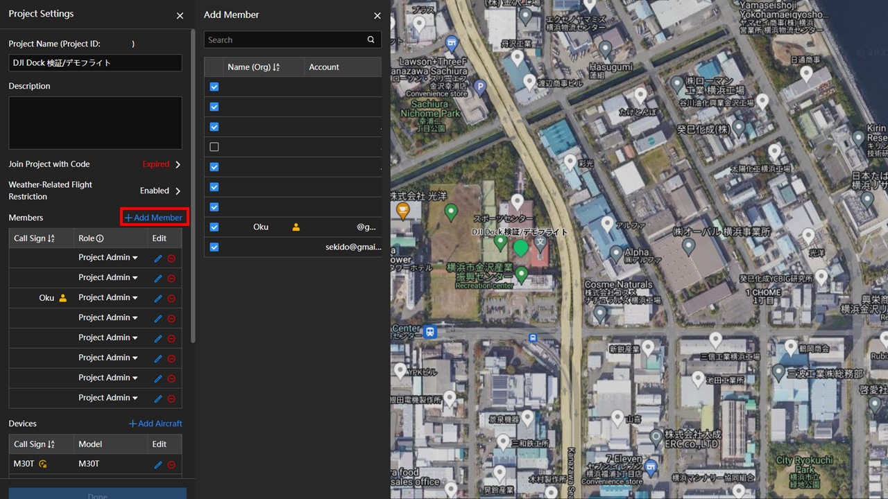 DJI FlightHub2 では、2つの方法からメンバーの追加が可能です。