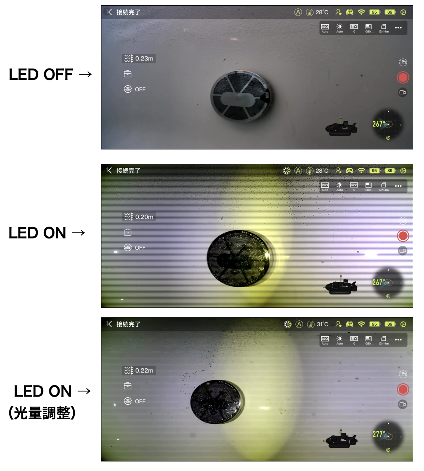 なお、上記の通り、環境によりLEDライトの光量調整をすることで、フリッカー現象が軽減できる場合もあります。